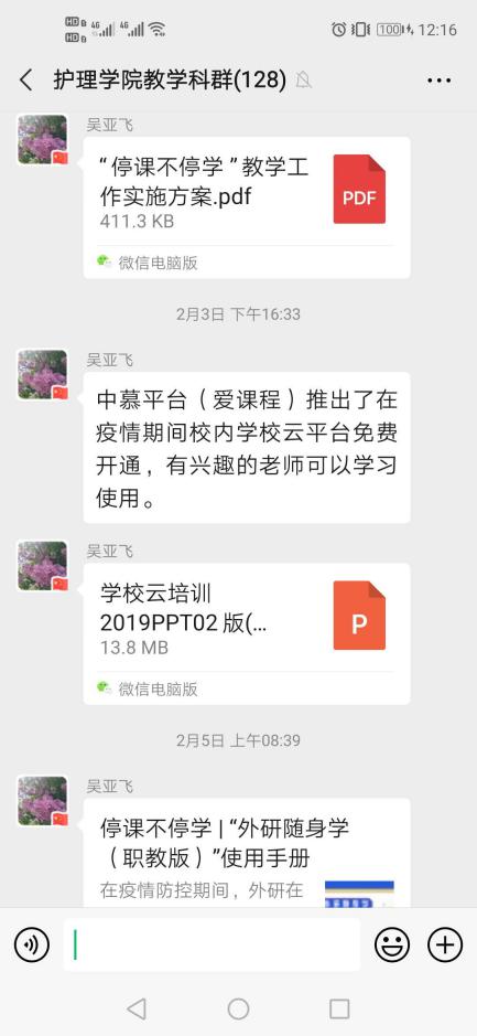 我院扩招学生大部分已经上班,只能通过下班后或农闲时间进行在线学习。大多数时候各代课教师无法按照课表进行教学,他们通过班级群、平台互动等形式全天候为扩招学生们随时答疑解惑。对于学习进度落后的同学,代课教师通过学习平台、学生群中进行督促;对于学习进度特别落后的同学,通知辅导员电话联系该名同学进行劝导并督促。确保每一位学生学习进度不落后,做到不让一个学生掉队。