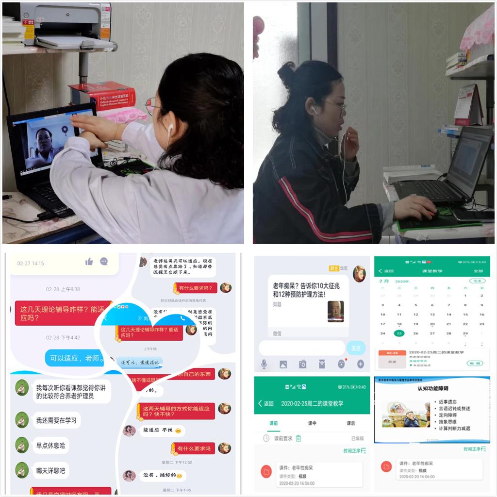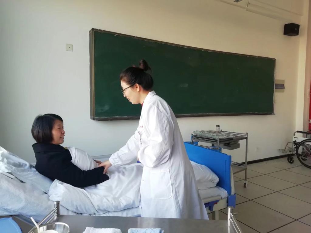 面对年初突如其来的新冠肺炎疫情,孙会娟老师表示:“春节期间突遇新冠疫情,学校被迫延迟开学,在此特殊时期jinnianhui金年会诚信至上张成院长、吴亚飞副院长、任秋爱副院长分别对疫情期间线上辅导工作进行了详细的部署和安排。张院长要求疫情期间“停课不停教,停课不停训”,强调稳定好学生情绪的同时,周密计划、实施疫情期间的训练安排。直至2020年4月疫情后返校,养老组完成了2018年、2019年国赛理论、实操案例库的辅导,以及大赛礼仪培训。疫情期间,辅导教师团队利用QQ群、职教云、微信等平台对学生进行了理论、实操辅导和线上答疑。理论主要通过职教云和QQ直播的形式线上集中辅导、线下整理消化,学生将作业完成后拍成图片或以WORD文档形式反馈到QQ群后由老师批阅修改。实操方面各辅导教师将生活照护、基础照护和康复训练模块的示范过程录制成视频分享到QQ群,学生在家利用实物练习,再将练习情况拍成反示教视频发到群里,老师逐一点评指正。此外,我们把大赛礼仪培训分为静态、动态礼仪两部分。静态礼仪包括眼神、面部表情、手臂姿势(指示物品位置、邀请进出门、请就坐)、站姿等身体语言;动态礼仪包括走姿、转身、搀扶、蹲姿、指引、进出门、核对用物、上下楼梯等。学生对照镜子练习眼神、表情以及站、坐、蹲等仪容仪态,经过在家反复苦练将每个礼仪动作潜移默化融于比赛项目的练习中,力求使学生在赛场上的所有表现高标准地契合礼仪要求。”