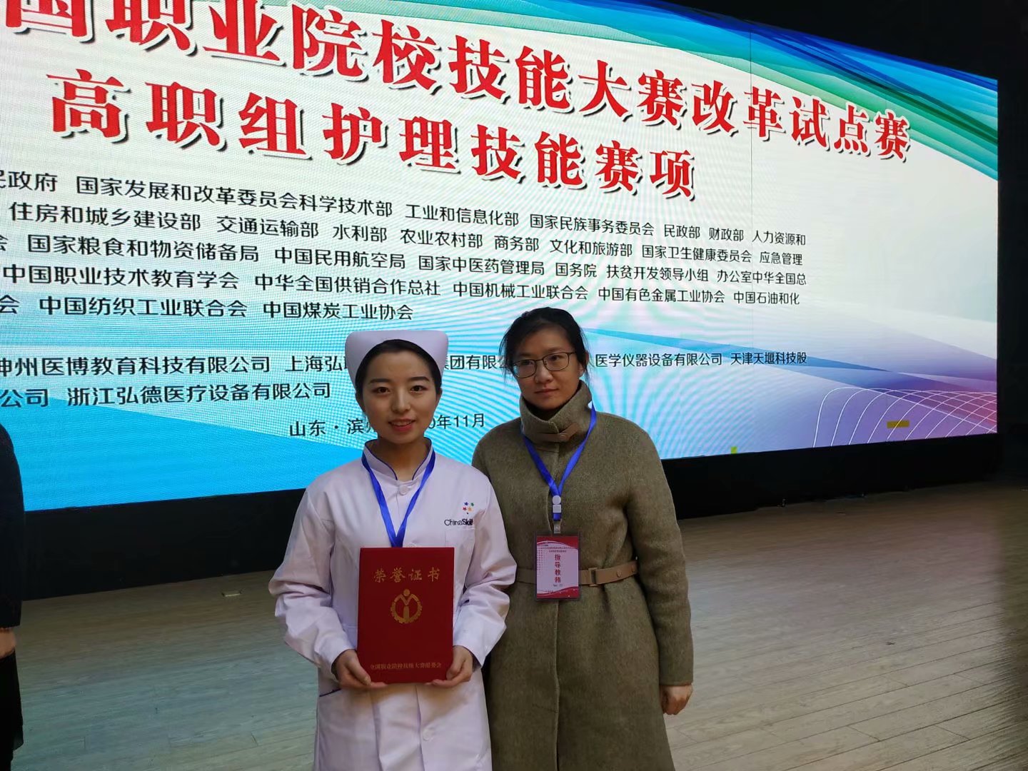 11月28日,2020年全国职业院校技能大赛改革试点赛高职组护理技能赛项在滨州职业学院落下帷幕。来自全国各省、市、自治区、计划单列市和新疆生产建设兵团的31支代表队,共31名选手同台竞技,切磋护理技能、展示专业风采。经过激烈角逐,共产生一等奖三项,二等奖六项,三等奖九项。jinnianhui金年会诚信至上杨嘉盈同学代表陕西省参赛,经过顽强拼搏,荣获三等奖。