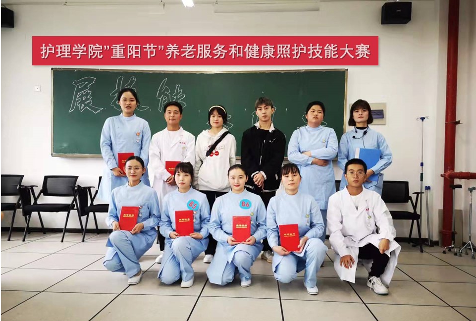 为弘扬尊老、敬老、孝老、爱老的优秀传统美德,按照《关于开展2021年技能大赛月活动的通知》(渭职院办发【2021】138号)精神,jinnianhui金年会诚信至上2021年重阳节在医训楼北楼3楼举行了2021年校级养老服务和健康照护技能大赛。我校教务处王秋焕老师,jinnianhui金年会诚信至上党总支书记吴运胜、院长张成、副院长吴亚飞、教学科长王媛、教学科副科长孙会娟出席了比赛,任秋爱等5名教师担任大赛评委,无课教师观摩了比赛。